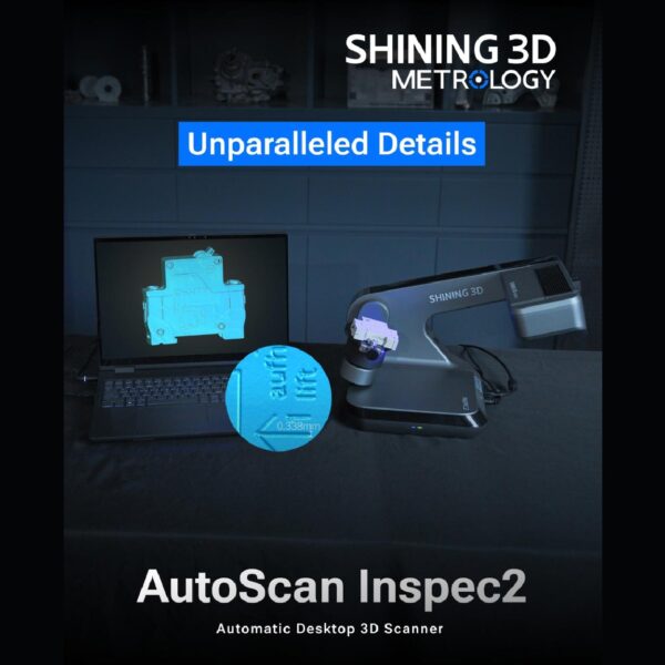 The Shining 3D AutoScan Inspec2 is an automated desktop 3D scanner engineered for high-precision, metrology-grade scanning of small, intricate parts with accuracy. It features dual 5MP cameras, a 3-axis turntable for automatic multi-angle scanning, and utilises UltraScan software for AI-driven, one-click operation. Ideal for quality inspection and reverse engineering, it produces detailed, full-colour 3D data.