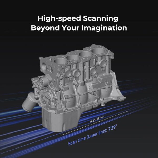 – 7 parallel laser lines: each of the 7 parallel laser lines has a fineness of 0.1 mm to efficiently capture sharp edges and precise details. The parallel laser lines are used for partial HD scanning.