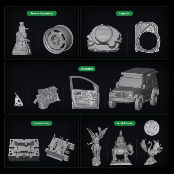 – Extensive compatibility with 3D printing and design software (e.g. Geomagic Control X, Geomagic Design X, Verisurf Inspect).