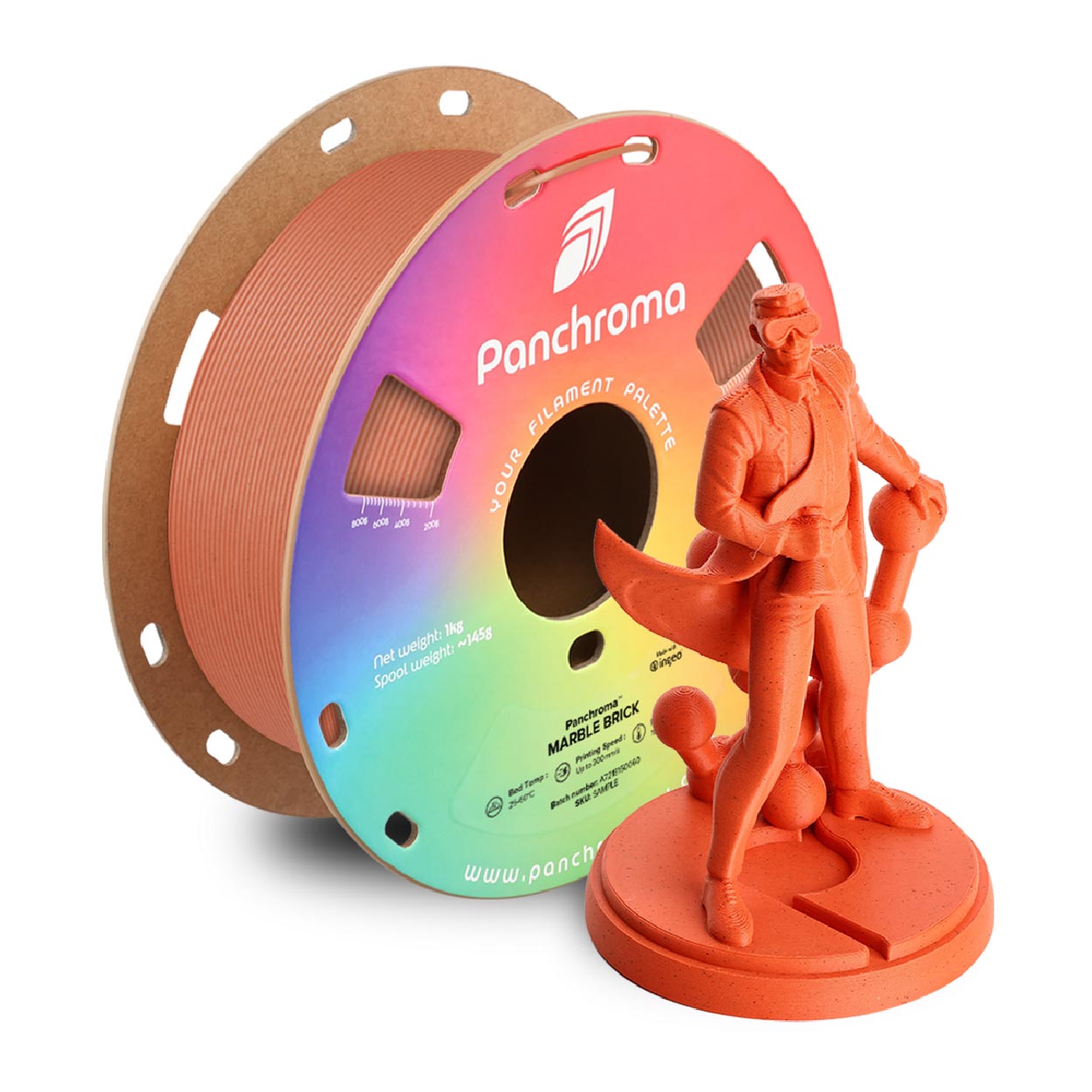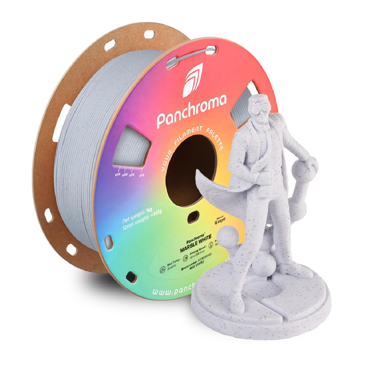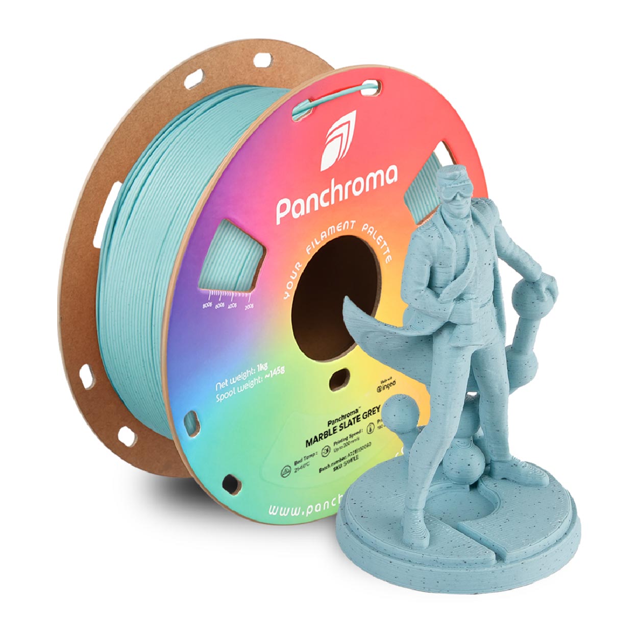 This unique filament combines the elegant aesthetics of marble with modern 3D printing technology. This gives your creations a noble stone structure that is perfect for decorative objects, sculptures or architectural models. But it’s not just about the look – Panchroma PLA Marble makes the printing process a breeze. Thanks to its ease of use and impressive stability, you can rely on precise results with every layer. With a high printing speed, you’ll have the time for your next big idea.